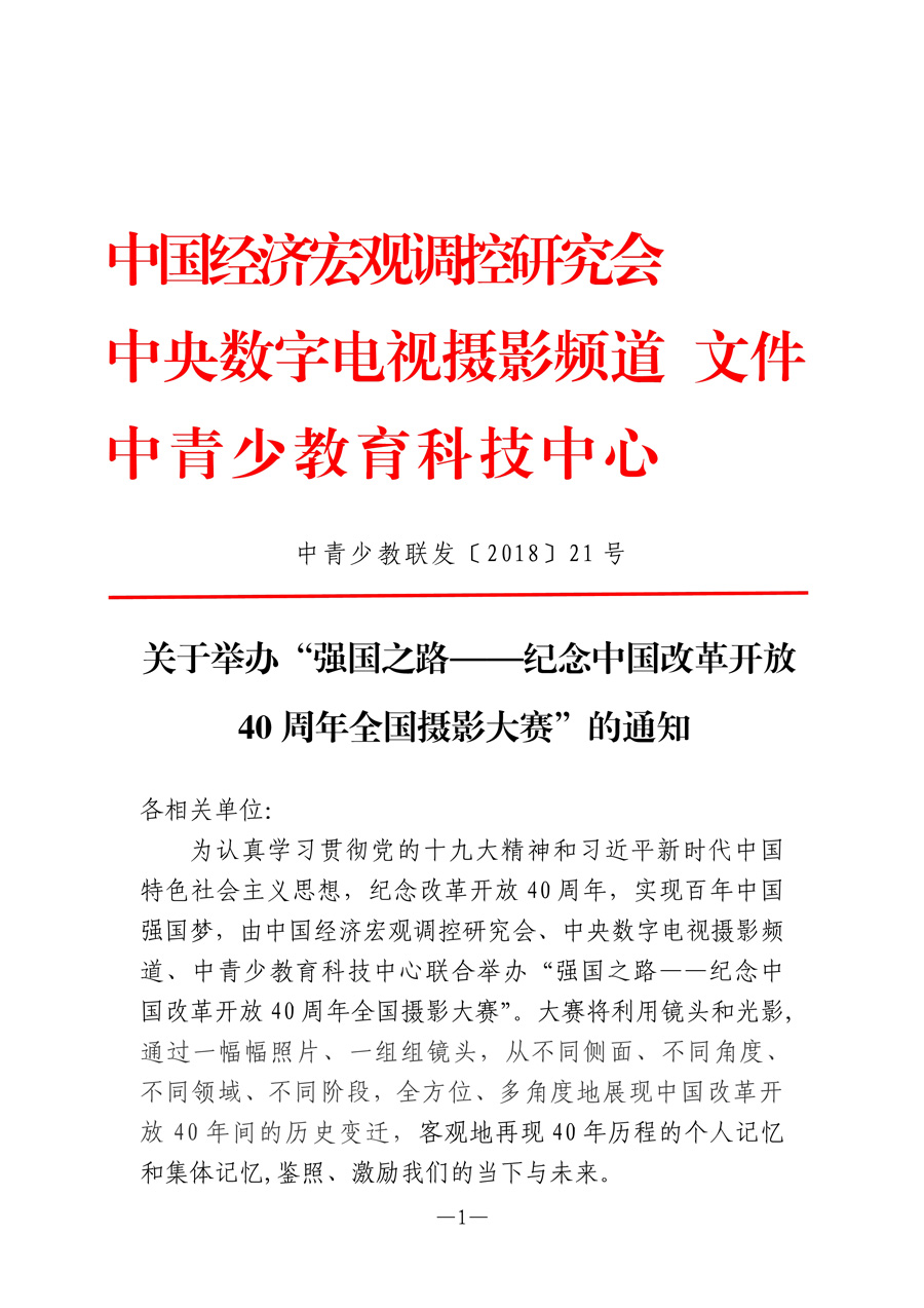 关于举办“强国之路——纪念中国改革开放 40周年全国摄影大赛”的通知