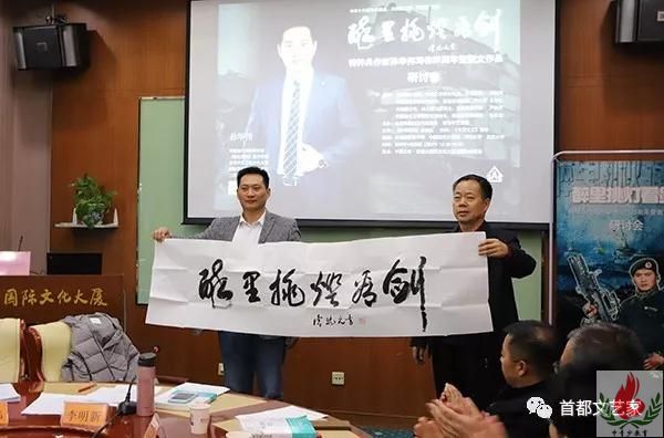 中青少教育网3月26日北京电讯(通讯员 熊凯文 李 莉)由中国散文学会、北京市海淀区作家协会、香港中文卫视联合主办的“特种兵作家孙华伟写作25周年暨散文作品研讨会”3月23日在首都师范大学国际文化大厦召开。中共第十六届中央委员、解放军高级将领李乾元上将为研讨会题写书法作品《醉里挑灯看剑》,共和国少将、冰心散文奖得主、著名军旅作家尹武平到会贺赠书法并致辞。著名作家梁晓声、王宗仁、尹武平将军、艾克拜尔·米吉提,著名评论家张志忠、红孩等多位文学名家出席并发言点评,给予充分肯定和积极评价。来自北京及周边省市的作家、评论家、艺术家,北京大学、清华大学、北京师范大学的学生代表和首都师范大学国外留学生代表,以及中央电视台、《人民日报》《文艺报》《中国作家网》等媒体记者50余人出席。孙华伟作了题为《我的另一个世界》的主旨演讲,深情讲述了自己和文学结缘的心路历程,分享了自己对于文学与写作的感悟,赢得了与会嘉宾真诚热烈的掌声。