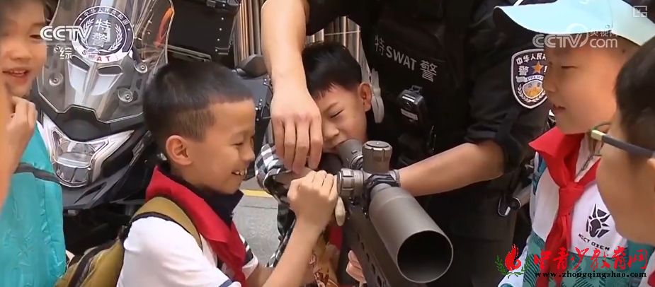 在上海,警察叔叔走进校园,通过精心设计,将安全教育融入到各种体验、互动、游戏中。活动现场,特警小哥直接带来手枪、狙击枪、警用摩托等,逐一演示、讲解,瞬间收获了一批小迷弟。