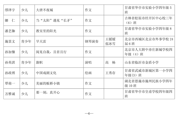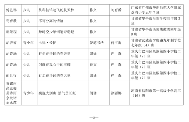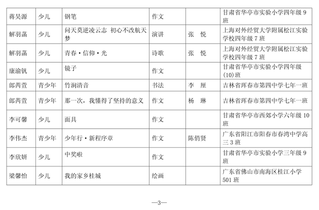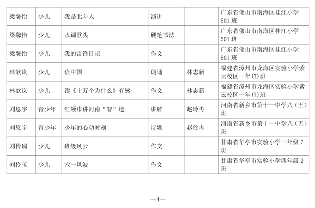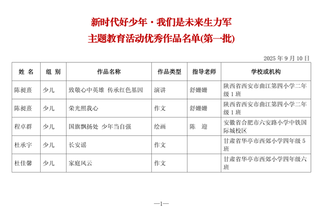 第一批“新时代好少年•我们是未来生力军”主题教育活动优秀作品名单公布