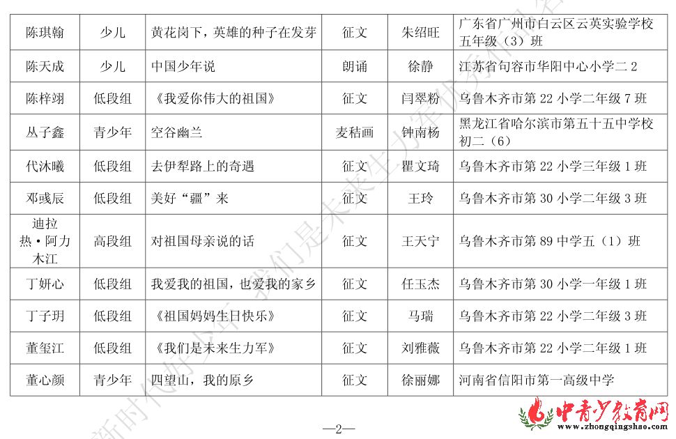 第三批“新时代好少年•我们是未来生力军”主题教育活动优秀作品名单发布