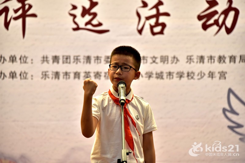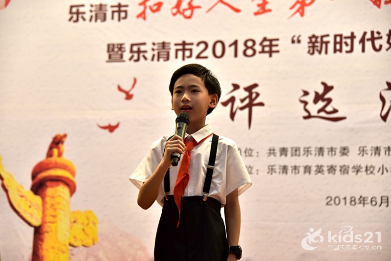 活动现场,20位同学根据自己上报类别进行事迹演讲,他们声情并茂,表达出做为一名少先队员,当以严格的标准规范自己的行为,努力学习,团结协作,牢记自己的光荣使命,做合格的党的接班人。同学们的演讲事迹感人、实例生动、重点突出,或激情洋溢,或镇定自若,或娓娓道来,从感恩社会、关爱他人、孝敬父母、保护环境等方面,表达了自己争当新时代好少年的决心,他们的故事深深打动了现场观众,场内不时响起阵阵掌声。好少年们的感人事迹体现了乐清全市少年儿童传承中华民族传统美德的精神风貌,他们身上的闪亮品质,让全市未成年人学有榜样、行有楷模、赶有目标。