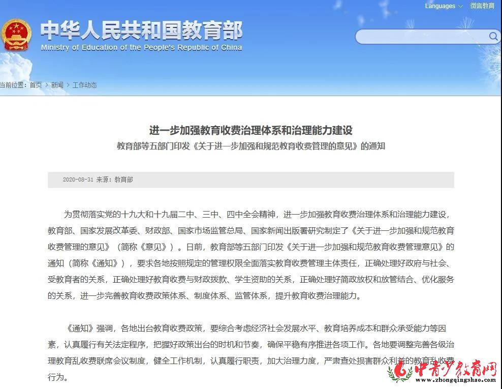 为贯彻落实党的十九大和十九届二中、三中、四中全会精神,进一步加强教育收费治理体系和治理能力建设,教育部、国家发展改革委、财政部、国家市场监管总局、国家新... [详细]