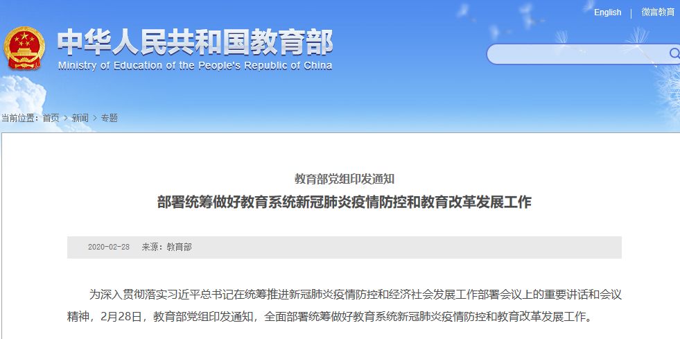 为深入贯彻落实习近平总书记在统筹推进新冠肺炎疫情防控和经济社会发展工作部署会议上的重要讲话和会议精神,2月28日,教育部党组印发通知,全面部署统筹做好教育系... [详细]