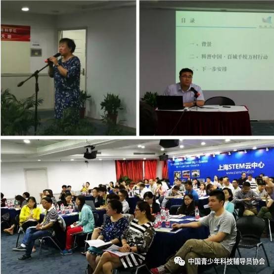 上午培训由中国科协科普部基层处项目主管李强作了关于“科普中国•百城千校万村行动”的介绍,中国科协青少年科技中心辅导员工作处副处长祝贺就校园e站的使用和功能向大家作了详细说明。