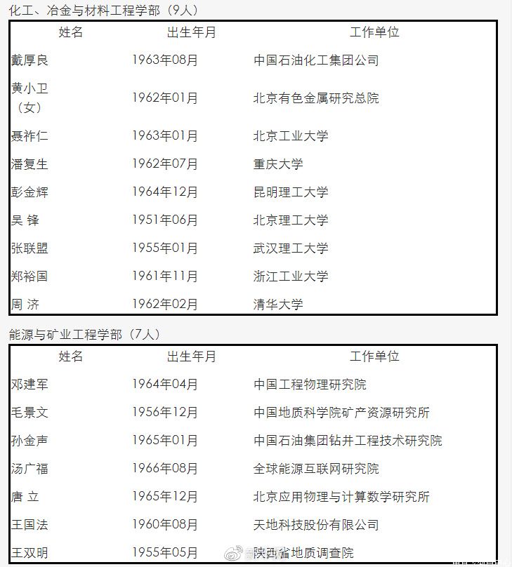 中国工程院2017年院士增选结果已经主席团会议审议通过并报国务院备案,现予公布。