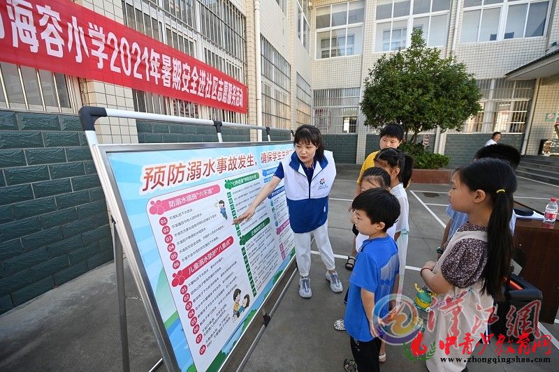 湖北省襄阳市海容小学的教师志愿者来到襄城麒麟社区,为辖区孩子们讲解暑期安全注意事项,并向家长发放安全提示宣传单,指导家长对学生的假期活动进行合理安排和监管。