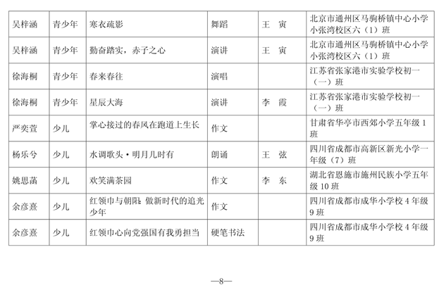 第一批“新时代好少年•我们是未来生力军”主题教育活动优秀作品名单公布